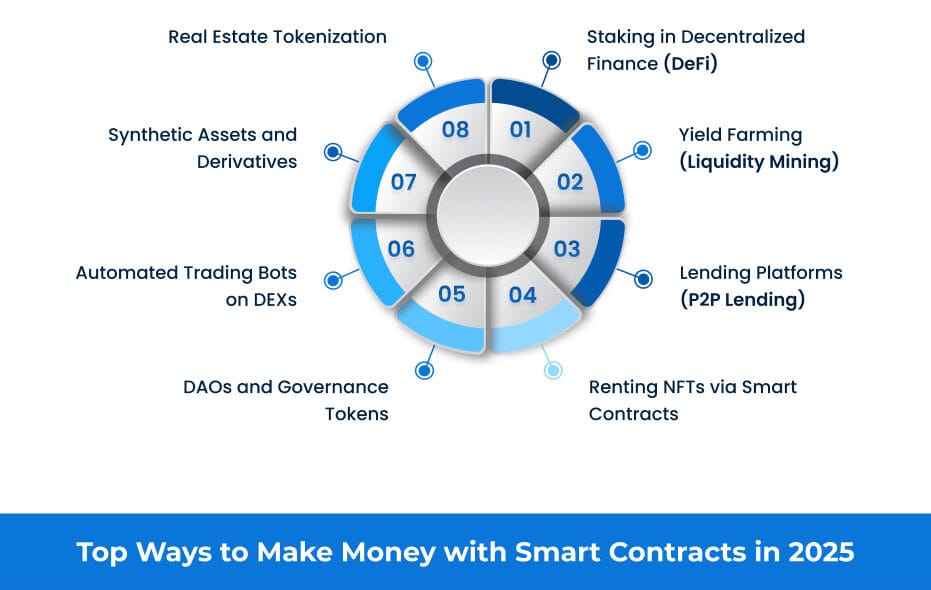 Now that we’re all on the same page, let’s talk about the top ways to make money with smart contracts in 2025.