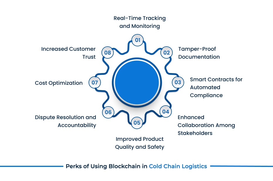 Blockchain in cold chain logistics also provides clear, indisputable records of product handling and shipment conditions that minimize disputes to a great extent. In case of discrepancies, stakeholders can quickly identify the responsible party.
