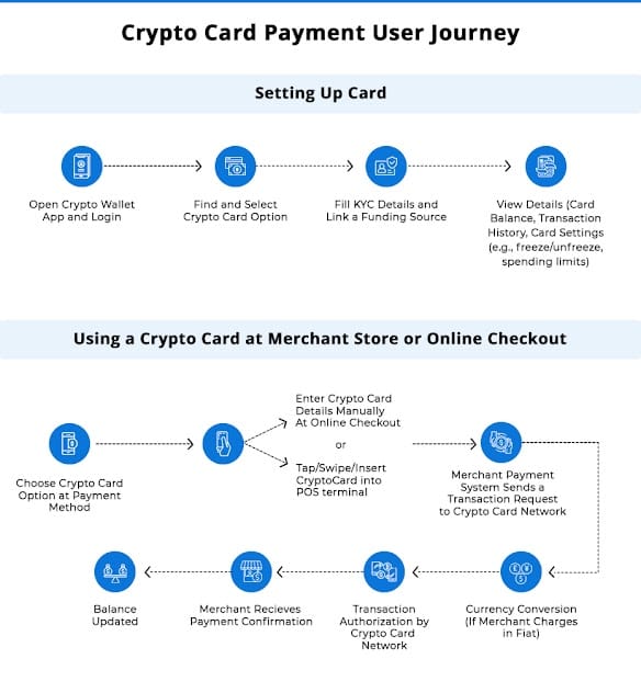 - Interoperability and Global Reach : In today’s interconnected economy, crypto wallets are increasingly becoming gateways to a global financial ecosystem, supporting multiple digital currencies, NFTs and offering interoperability across various blockchain networks. Crypto card payment solutions can seamlessly facilitate payments in terms of different cryptocurrencies, NFTs, tokenized RWAs, etc.