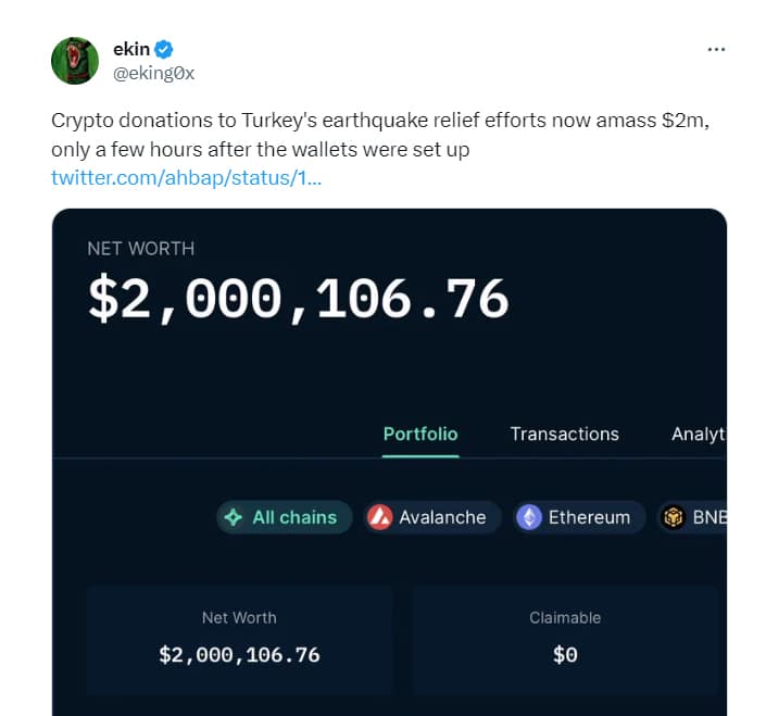 It was not long ago when millions of dollars in cryptocurrency donations were poured into Turkey to aid the people who suffered due to devastating earthquakes.