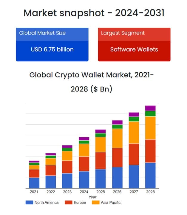 White Label Crypto Wallet is a pre-engineered digital vault that is customized and rebranded by another firm for its use. This allows businesses to launch a branded wallet without devoting intensive time and resources. Crypto Wallet Market size was valued at USD 6.75 billion in 2019 and will grow from USD 8.42 billion in 2023 to USD 61.87 billion by 2031, growing at a CAGR of 24.8% in the forecast period (2024-2031). This means more businesses are leveraging  White Label wallet development to earn promising investment returns. These wallets offer a wide range of benefits like fasten-time to market, profitable investment returns, and state-of-the-art features and functionalities to enhance user experience.