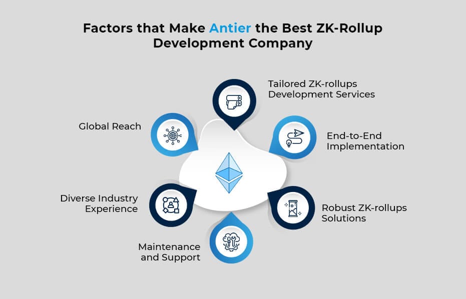 Here’s why Antier, a leading zk rollup development company, is the optimal choice for businesses looking to integrate zk-proofs into their products: