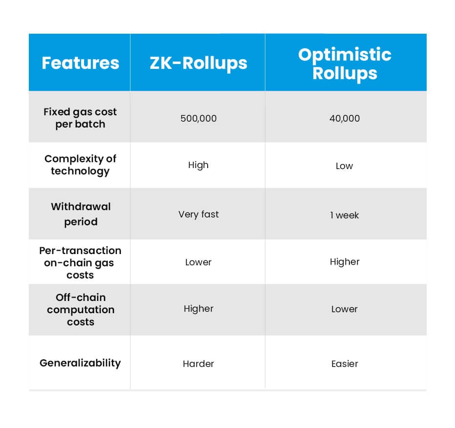 Though there are several aspects to articulate the differentiation between zk rollups and optimistic rollups, here are some crucial ones: