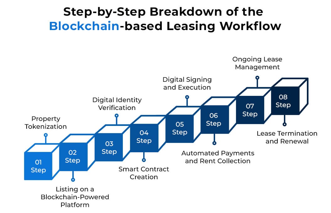 The property leasing process is often riddled with inefficiencies, paperwork, and delays. Blockchain streamlines leasing through automation, transparency, and enhanced security. Below is a step-by-step breakdown of how the blockchain-based leasing process works: