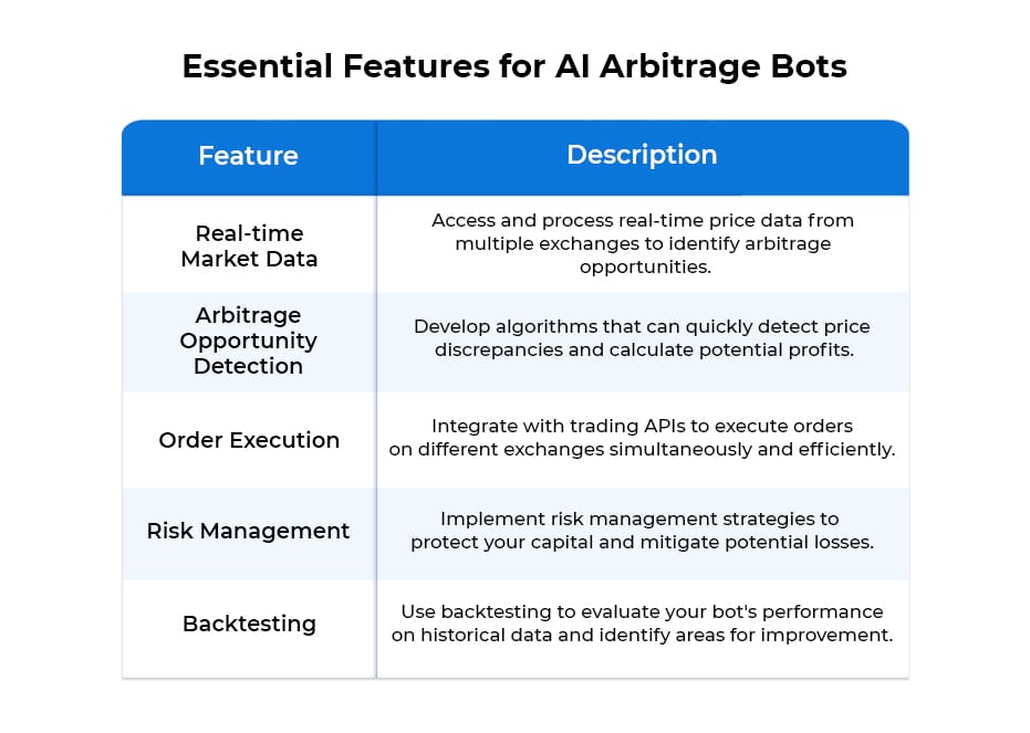 - Scalability: Ensure your crypto arbitrage AI bot can handle increasing trading volumes and market volatility.