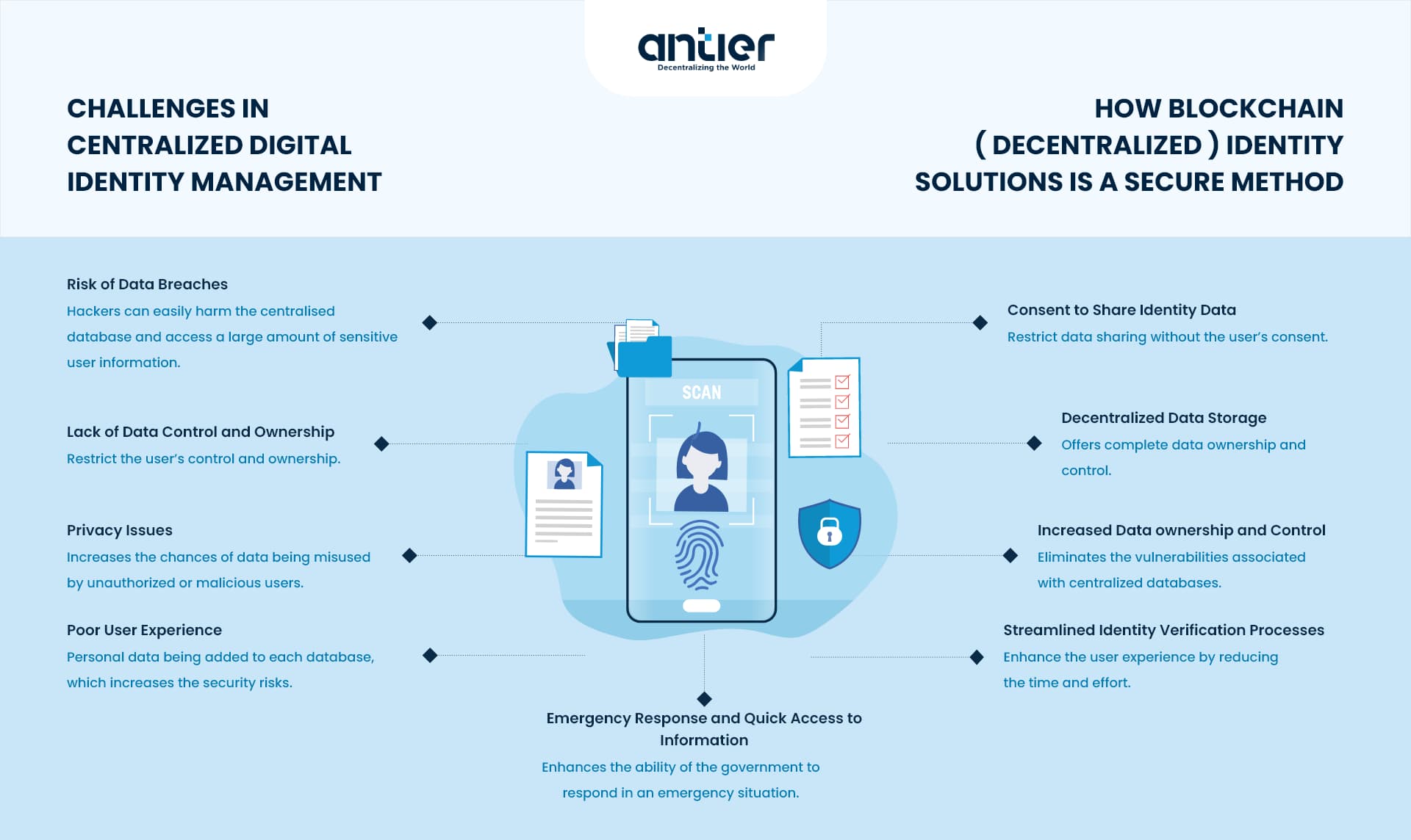 Addressing these challenges requires businesses to explore innovative solutions, such as blockchain-based identity management, to enhance security, privacy, and overall efficiency in digital identity management. Thus, it is recommended to get in touch with an experienced company to design robust, extensive, and tamper-proof blockchain identity solutions.