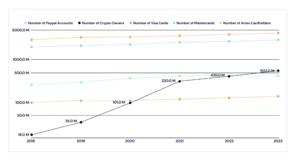In 2024, cryptocurrency users surged to 560+ million, 7% of the world’s population, whereas the cryptocurrency market cap neared $4 trillion in December 2024. That’s a huge milestone for something that started only 15 years ago. This figure surpasses the user bases of established financial giants like American Express and PayPal, highlighting the rapid mainstreaming of digital assets.