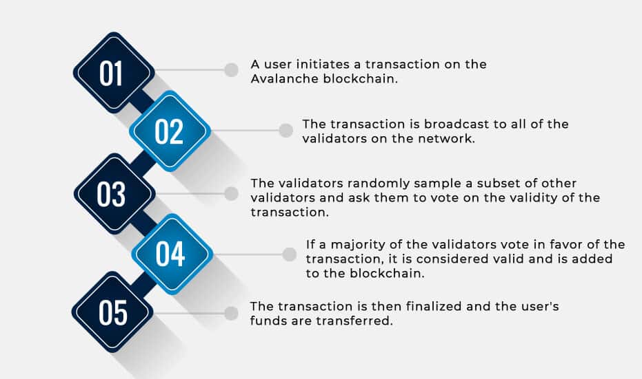 Here is a brief step-by-step explanation of the working mechanism of Avalanche blockchain: