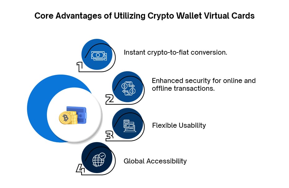 - Real-time Processing: Enables instant transactions through crypto wallet virtual cards with minimal fees.