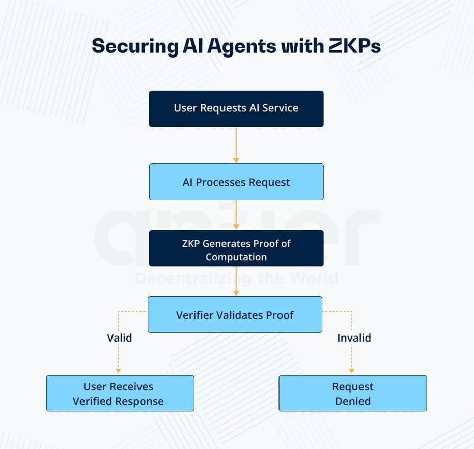 Here’s how ZKP functions step-by-step to maintain integrity and trust in AI agents: