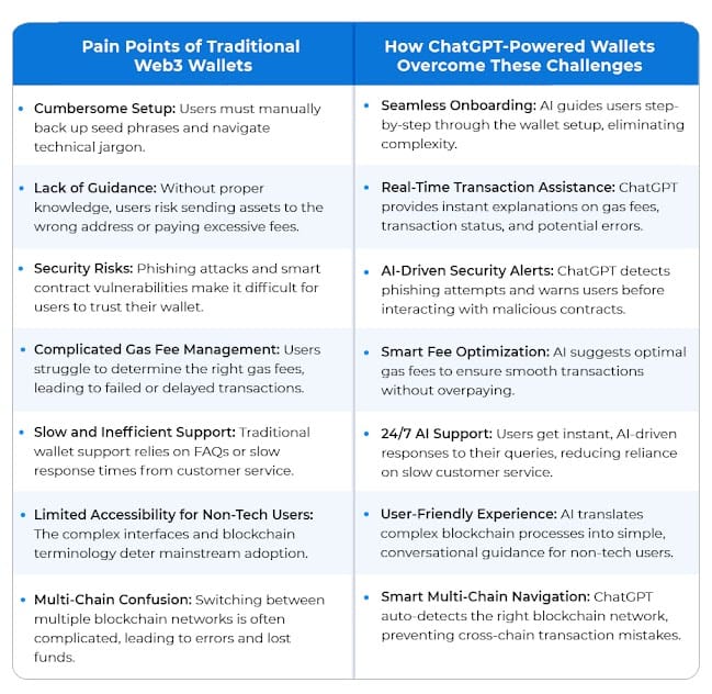 Here’s a comparison of the key issues and how AI-powered wallets are solving them: