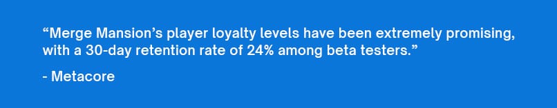 Multiple reputable sources, including statements from Metacore and Supercell, confirm that Merge Mansion achieved a 30-day retention rate of 24% among beta testers at launch. This is consistent with your cited 22% figure for live operations, and it is significantly higher than the typical 8% 30-day retention for hyper-casual games as reported in industry analyses.