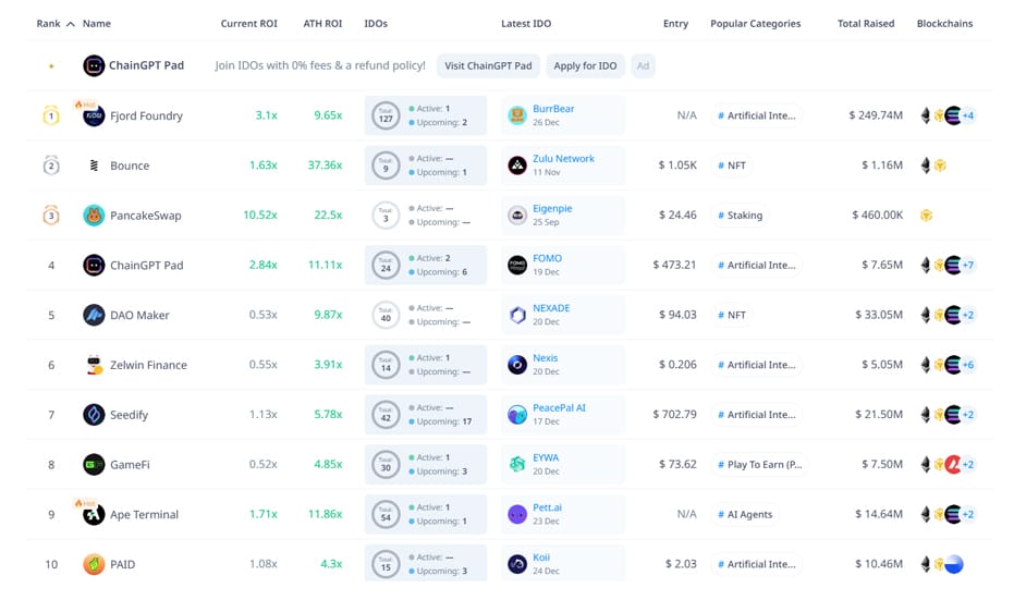 - Top 10 IDO Launchpads Ranked by ROI Generated
