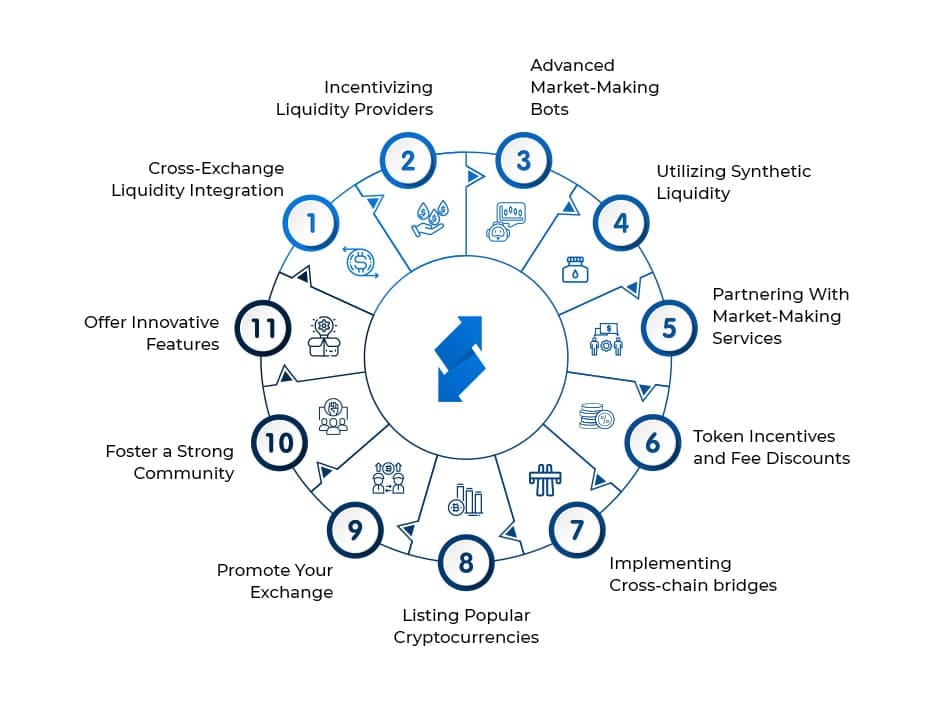 Let’s now discuss more practical strategies that can help cryptocurrency exchange platforms secure robust liquidity and offer a high-quality user experience.