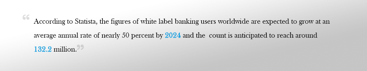 This statistic reflects that white label banking is a futuristic approach and is going to lead the market trends in near future.