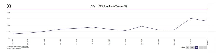 The DeFi ecosystem is exploding albeit being fragmented. According to the dApp industry report by dAppRadar, TVL in DeFi grew by 211% in 2024, reaching the $214 billion mark which was only 20% short of the December 2021 peak. Even the DEX to CEX trading spot volumes achieved an ATH ratio of 20.18% in January 2025. SEC closed their proceedings against UniSwap, a big win for DeFi. MiCA in Europe and Trump in the United States set the stage for a positive regulatory landscape for crypto and DeFi. It seems like a clear regulatory sky for DEXs now.