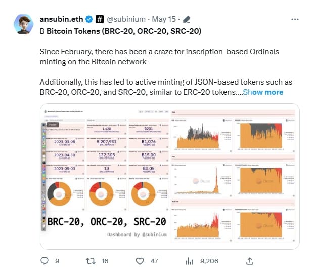Let us have a look at what Twitter has to say about SRC-20 Tokens-