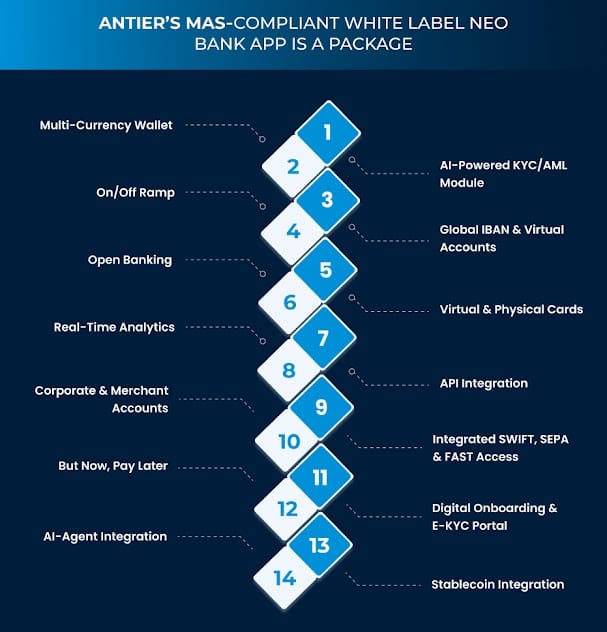 Core USPs of Antier’s MAS-Compliant White Label Crytpo Neo Bank Suite