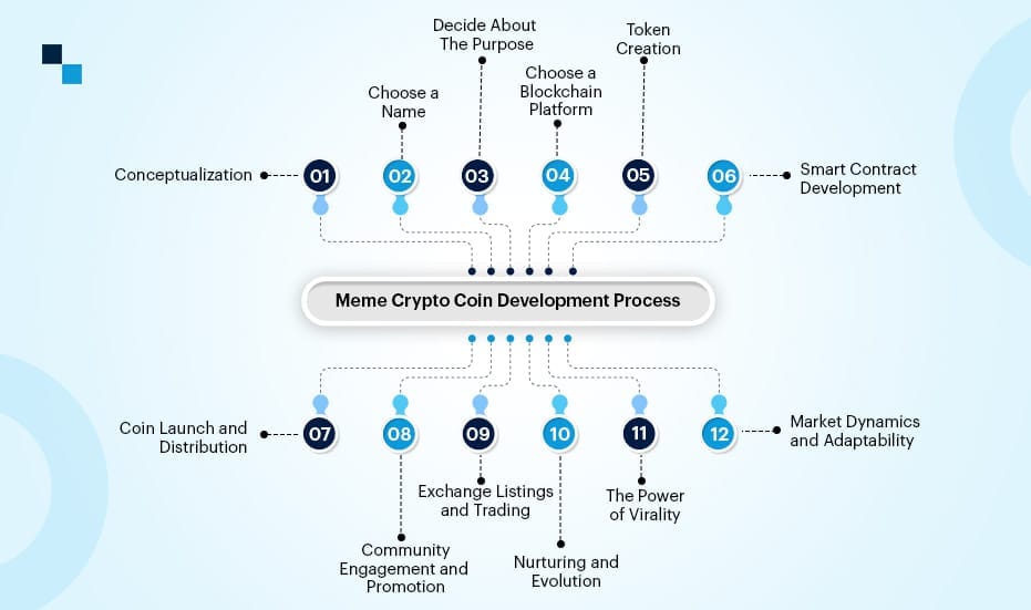 Let’s learn about the steps involved in meme crypto coin development. Here’s an overview of the journey from concept to community craze.