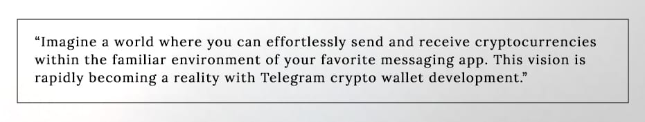 An expansive ecosystem, massive community, user-friendly features, exceptional transactional efficiency, and a steadfast commitment to transform the web2 landscape- that’s what Telegram brings to the table. The robust messaging platform presents a compelling opportunity for crypto businesses to innovate and transform how users interact with cryptocurrencies. As it expands into the cryptocurrency wallet market with its “Telegram wallet apps”, it has the potential to become a central hub for digital asset transactions.
