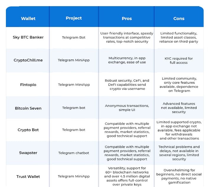 Let’s shed some light on the top players in the Telegram wallet app market :