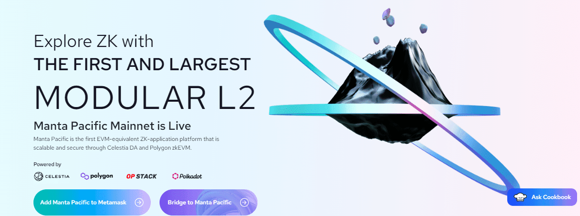 Manta Network is one of the top ZK rollup projects, and it specializes in ensuring privacy for DeFi transactions. It operates on Ethereum’s Manta Pacific layer-2 and employs zk-SNARKs (Zero-Knowledge Succinct Non-Interactive Argument of Knowledge) to safeguard transaction privacy.