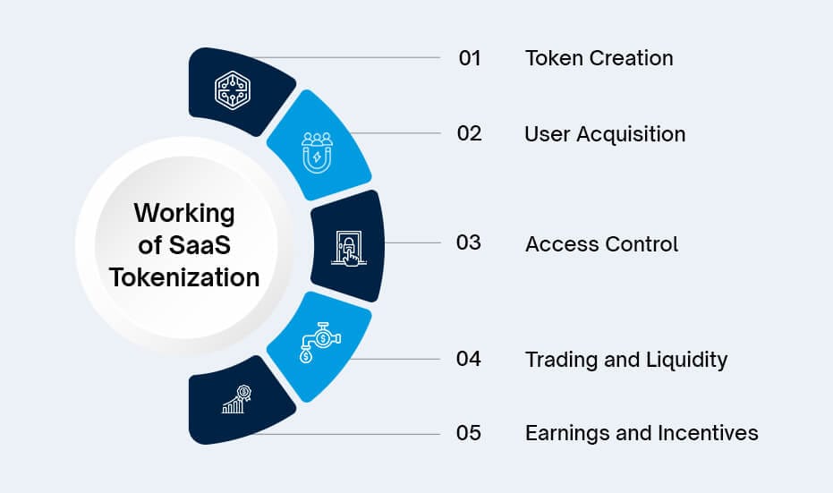 The initial process during tokenization solutions for SaaS platforms will be to create some type of digital token that represents a set of access rights to the SaaS application. This will typically be based on a blockchain platform, smart contracts being used.