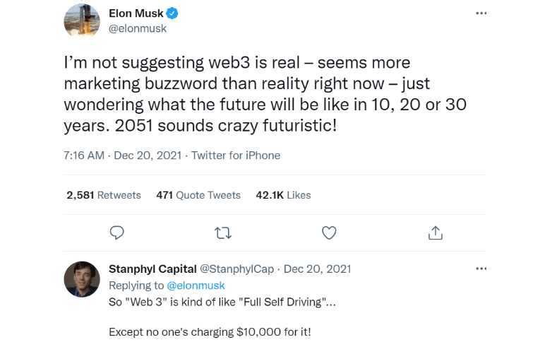 People are talking about Web3.0 on various social media platforms, such as Twitter. Here’s what Elon Musk, Tesla CEO, has jotted down: