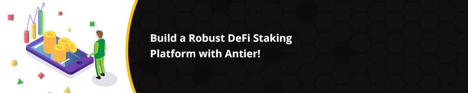 Decentralized Finance (DeFi) staking is a popular way for cryptocurrency holders to participate in blockchain networks, support their operations, and earn rewards. Thinking of venturing into Defi Staking Platform Development? Rely on Antier, the experienced and expert DeFi staking platform development company well-versed in the domain.