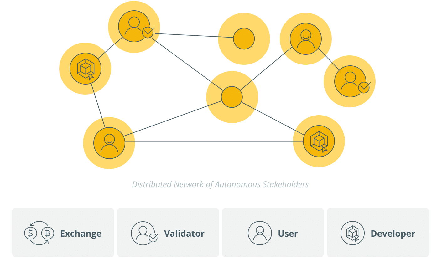 - Here, in the above diagram, the exchange is a DAO organization designed by a disparate group of contributors, including developers.