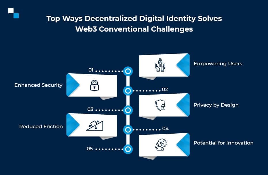 The aforementioned pain points of the existing Web3 identity verification can be addressed by leveraging blockchain technology. This is exactly where digital ID solutions play a vital role. Let us explore how blockchain powered identity solutions can overcome these challenges: