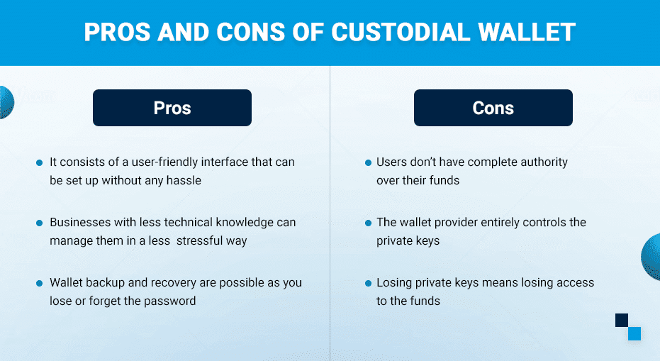 Crypto custodial wallet performs the main role of storing and managing digital assets. We store digital assets in physical wallet, which don’t hold crypto assets. These wallet hold the seed phrase or private keys that help to access or retrieve the wallet content. Losing the wallet keys would mean losing control over the currency.