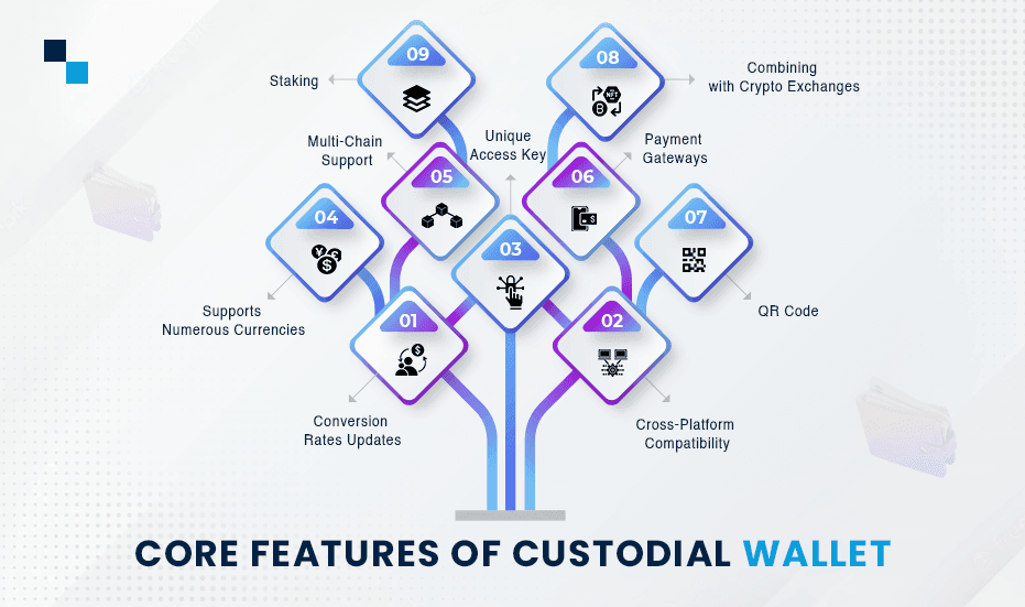 Custodial wallet, as the name suggests, are wallet in which a third party holds private keys. Third-party has the authority to manage the keys, sign the transactions and protect the users’ assets. Coinbase, Kraken, and Binance are popular examples of custodial wallet.These are technical products so they are developed with the guidance of custodial crypto wallet providers who can customize the product as per your preferences.